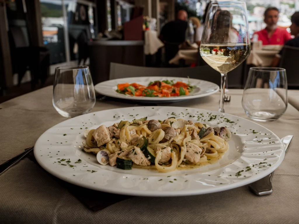 La cucina propone un menu vario che celebra i sapori del territorio ligure, con piatti di mare, antipasti sfiziosi e dolci fatti in casa, il tutto accompagnato da una carta vini curata e da una selezione di birre artigianali.